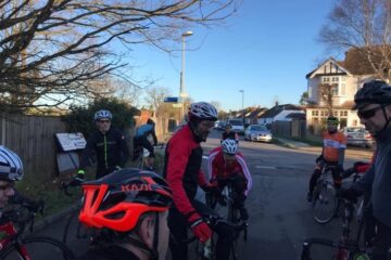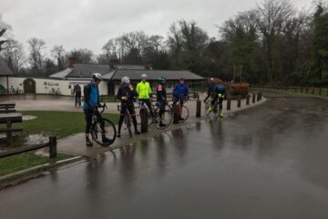 The group undertook a challenging bike ride along a classic NMV route, enduring wet and windy weather, Surrey Hills climbs, before returning home.